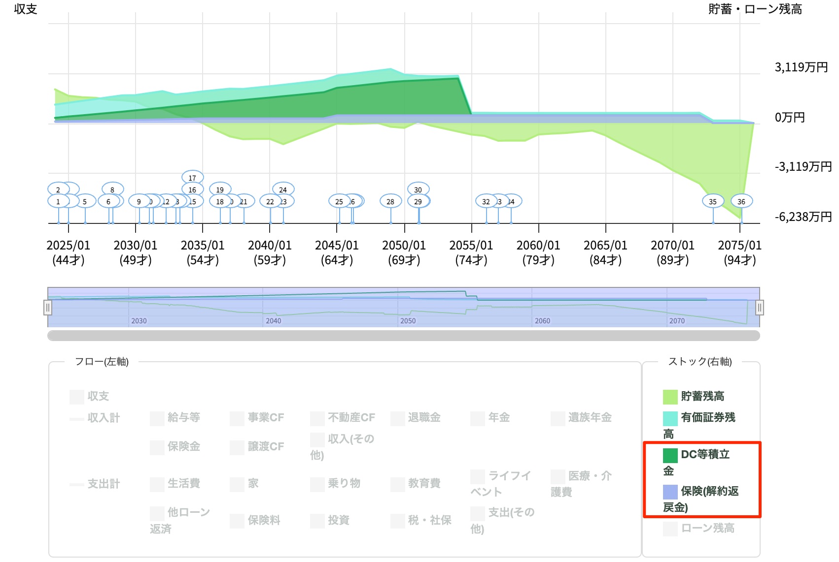 - 積立金等(DC、iDeCo等)と保険を新たにグラフに追加