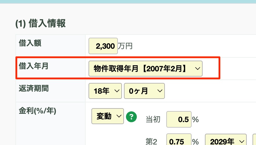 - ユーザーは借入年月として物件取得年月を直接選択できるようになりました。